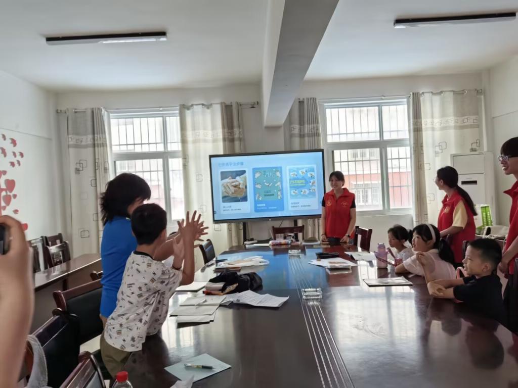 在活动中,志愿者为小朋友们认真地讲解了国际护士节的来历、护士的职责以及尊重护士等多项内容。小朋友们不仅听的十分专注还积极回答问题。志愿者们还带领着小朋友们做手工以此让小朋友们亲身体验护士的工作,通过手工的环节使小朋友了解护士的职责和重要性,也提升小朋友们的基础护理知识与动手能力。