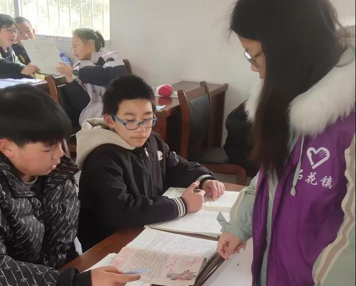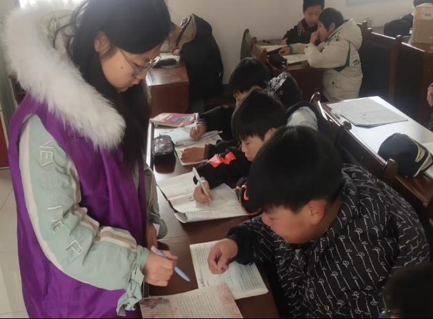 25级口腔医学技术二班黄欣悦同学为小朋友辅导作业