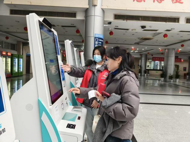 25级护理一班周金涵同学积极参与医院导诊志愿服务。身穿志愿马甲的她,在门诊自助机旁耐心引导群众操作挂号、缴费、打印报告等流程,细致解答就医疑问,协助患者顺利完成就医手续。这段经历不仅加强了她的服务意识,更让她深刻体会到医务工作的辛劳与责任。